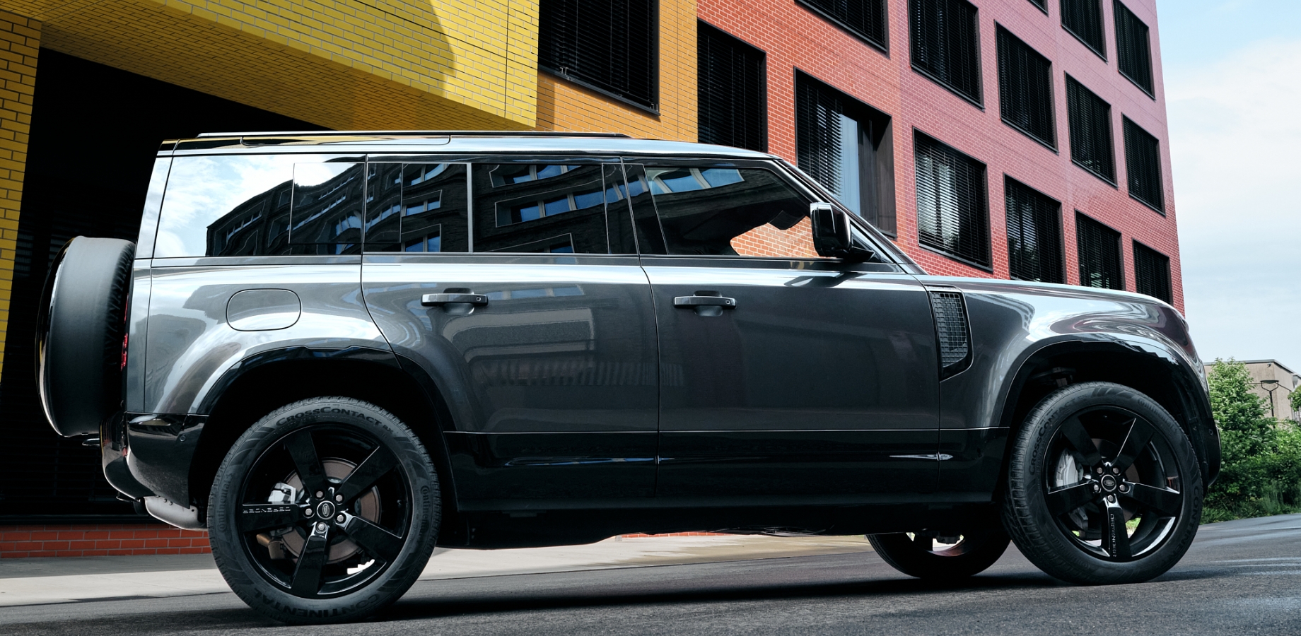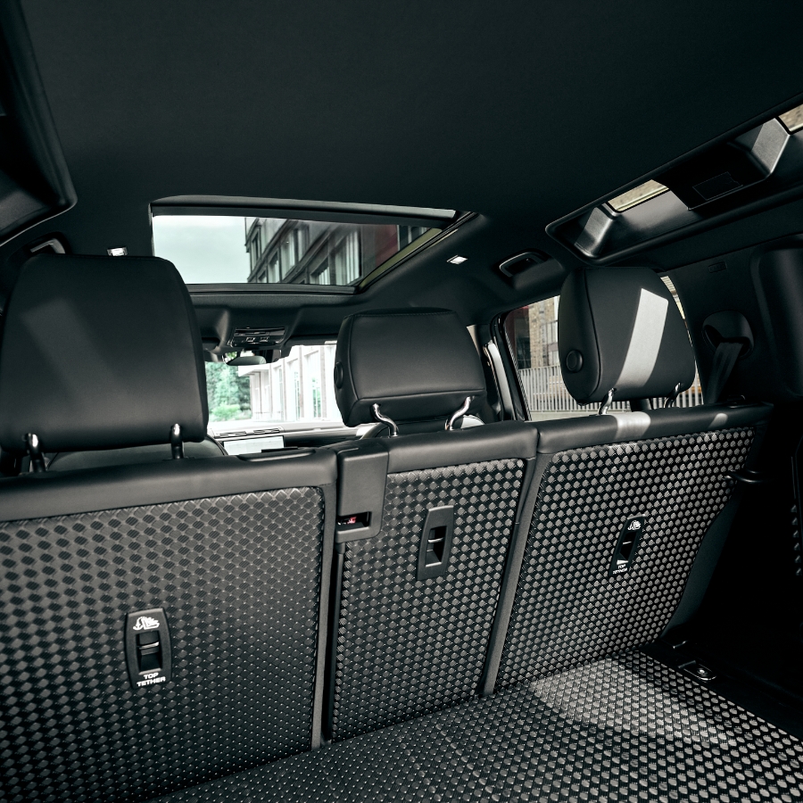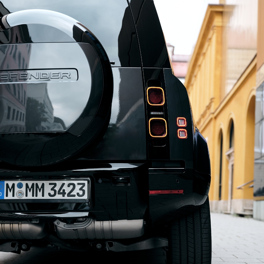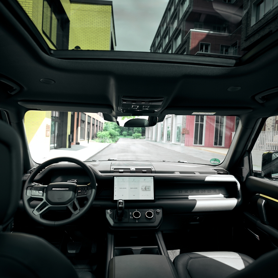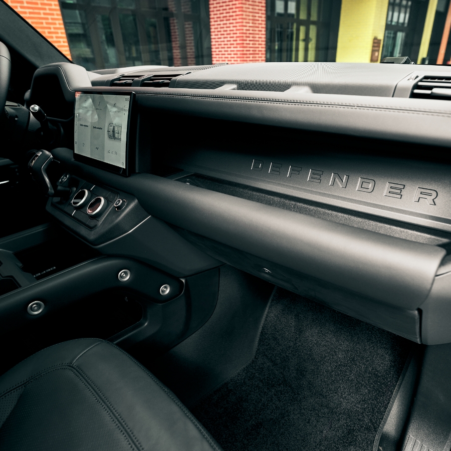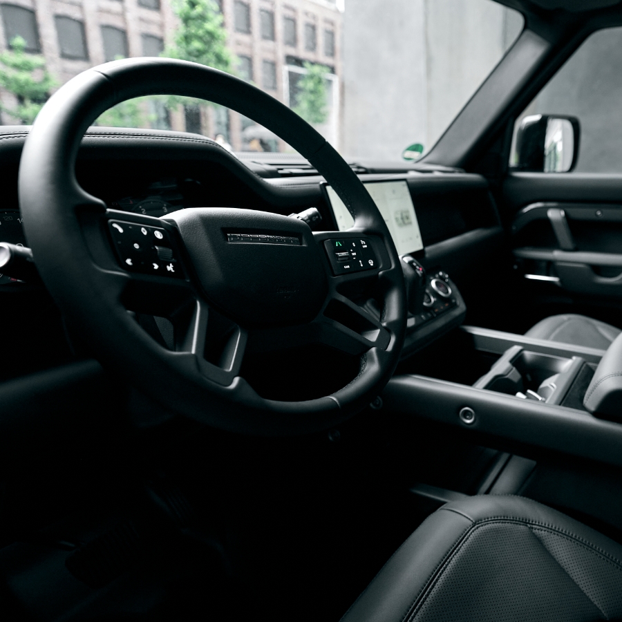 Markantes Exterieur trifft auf hochwertige Details: Die ikonische Silhouette in Carpathian Grey, kombiniert mit schwarzen Akzenten und auffälligen 22”-Felgen, verleiht dem Defender eine kraftvolle Präsenz. Im Innenraum dominieren klare Linien, edle Materialien und eine durchdachte Ergonomie für einen stilvollen Auftritt, egal ob Stadt oder Bergpass.